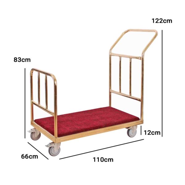 ترالی هتلی حمل چمدان یکی از تجهیزات ضروری در هتل ها و مراکز اقامتی است که برای جابجایی چمدان ها و وسایل مسافران طراحی شده است. این ترالی ها معمولاً از جنس فلزی مانند استیل یا آلومینیوم ساخته می شوند و به دلیل استحکام بالا و وزن مناسب، امکان جابجایی آسان وسایل سنگین را فراهم می کنند. طراحی این ترالی ها به گونه ای است که می توان چمدان ها را به صورت ایمن و مرتب روی آن قرار داد.