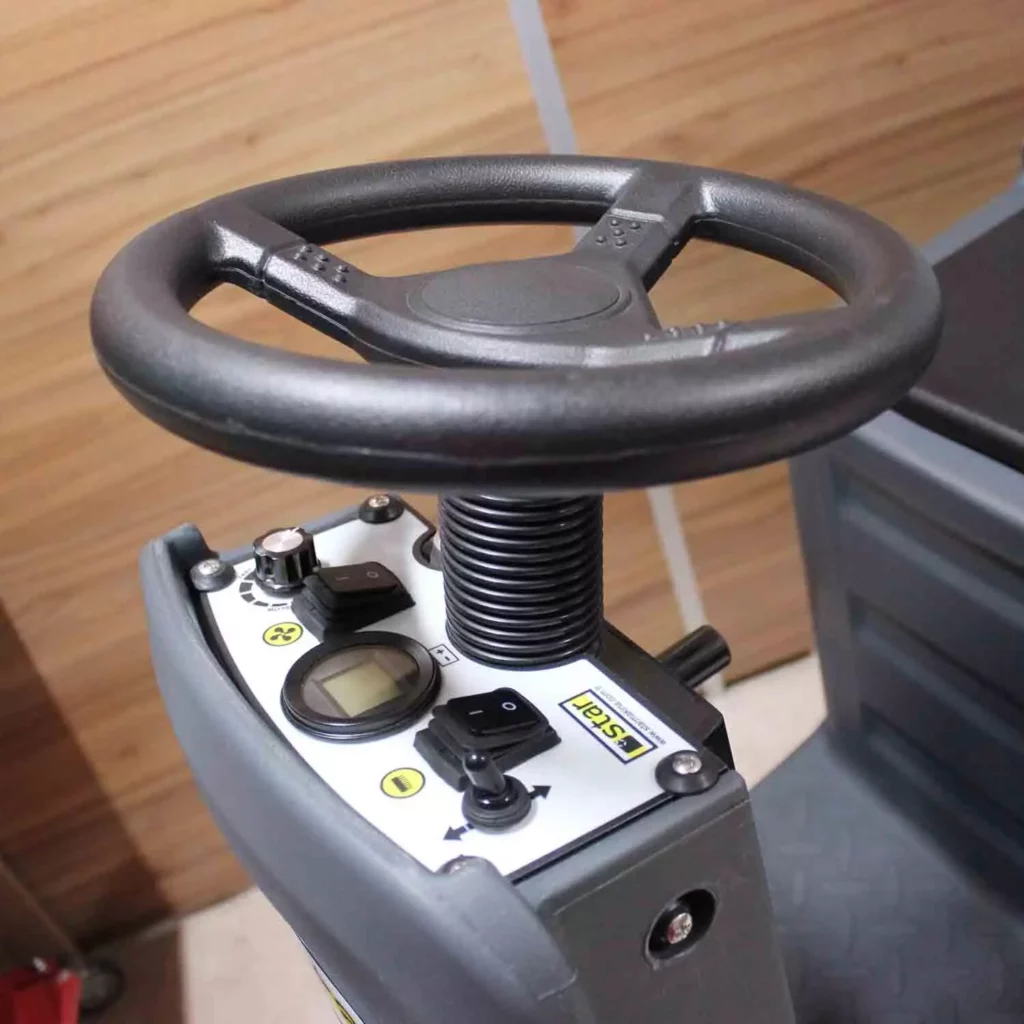 علاوه بر این، دستگاه قابلیت حرکت رو به جلو و عقب دارد و اپراتور میتواند تنها با استفاده از فرمان ساده و سیستم حرکتی پایدار، دستگاه را با کمترین زحمت کنترل کند. این سطح از راحتی و فرمانپذیری باعث میشود عملکرد نظافت بدون خستگی و با ایمنی بالا انجام شود.