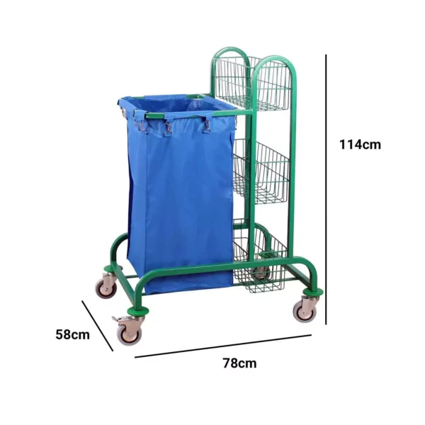 ترولی نظافتی مدل 2260 به یک بین برزنتی با ظرفیت ۸۰ لیتر مجهز است که برای جمعآوری زبالهها و مواد زائد استفاده میشود. این بین برزنتی از جنس مقاوم و با دوام ساخته شده و توانایی تحمل حجم بالایی از زباله را دارد. این ویژگی بهویژه در محیطهایی با حجم بالای فعالیت نظافتی مانند بیمارستانها، هتلها و کارخانهها بسیار مفید است.