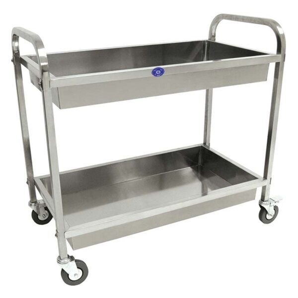 یکی از برجستهترین ویژگیهای این ترولی، طراحی دو طبقه با لبههای گود و بلند است. این طراحی باعث میشود که هنگام حرکت ترولی، وسایلی که درون آن قرار دارند، بهراحتی نیفتند یا سر نخورند. بهویژه در محیطهایی مانند آشپزخانههای صنعتی یا مراکز درمانی که جابجایی ظروف یا ابزار حساس رایج است، داشتن لبههایی با عمق مناسب یک ضرورت به شمار میآید.