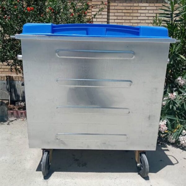 مخزن زباله گالوانیزه 1100 لیتری محدب با درب پلاستیکی