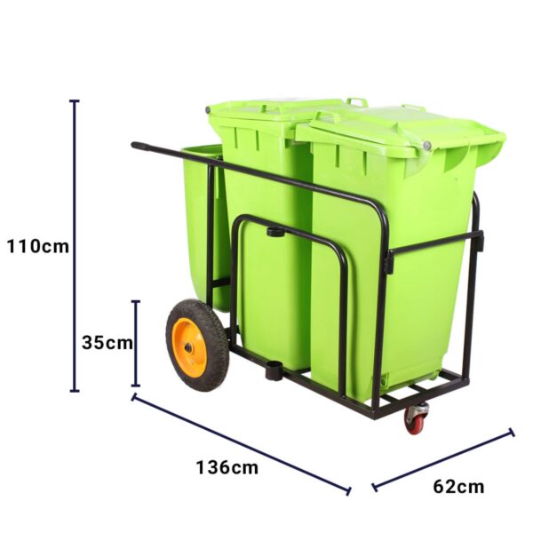 گاری چرخدار حمل زباله بزرگ دارای دو عدد مخزن 120 لیتری و یک عدد مخزن 50 لیتری مناسب جهت استفاده در شهرداری ها ، دهداری و محوطه های باز است