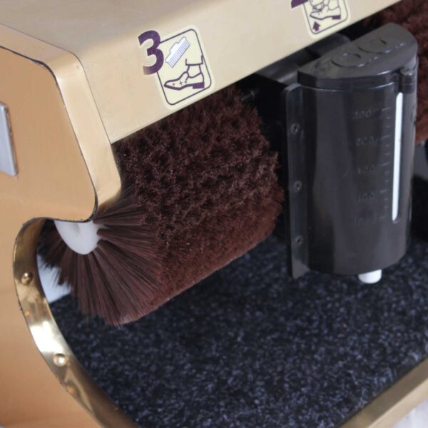 در قسمت بالای برسها، یک مخزن واکس تعبیه شده که عملکرد آن بهصورت مکانیکی و با فشار طراحی شده است. کاربر تنها با یک فشار سبک میتواند واکس را روی کفش تزریق کند و پس از آن، برسها بهطور یکنواخت آن را پخش میکنند. این مخزن ظرفیت مناسبی دارد و برای استفاده روزمره نیازی به پرکردن مداوم ندارد. همچنین سیستم تزریق طوری طراحی شده که از هدررفت واکس جلوگیری کرده و باعث مصرف بهینه و تمیز ماندن دستگاه میشود.