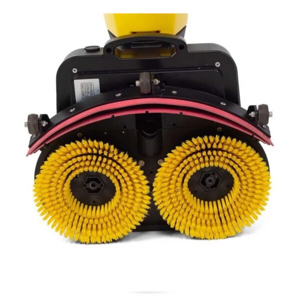 یکی از ویژگیهای مهم MT-SMART، برسهای دوتایی آن با سرعت 300 دور در دقیقه است. این برسها با فشار مناسب، سطح مورد نظر را به خوبی شستشو میدهند و قادرند هر گونه آلودگی سطحی را از بین ببرند. پهنای شستشوی برسها 43 سانتیمتر است که امکان پوشش سریعتر سطح و افزایش سرعت نظافت را فراهم میکند. با توجه به این مشخصات، اسکرابر قادر است در هر ساعت حدود 1200 مترمربع را به طور مؤثر تمیز کند که این موضوع برای محیطهای پرتردد و مکانهایی با مساحت متوسط بسیار کاربردی است.