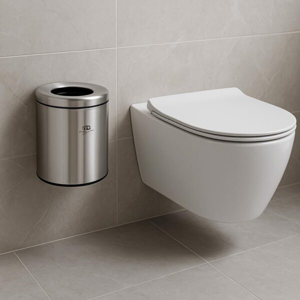 این سطل زباله به صورت دیواری نصب میشود. به دلیل اینکه با سطح زمین تماس ندارد، آب و رطوبت زیر آن جمع نمیشود و همین موضوع مانع از زنگزدگی، پوسیدگی و تجمع میکروبها میگردد. این طراحی به خصوص در محیطهای عمومی و بهداشتی بسیار اهمیت دارد.